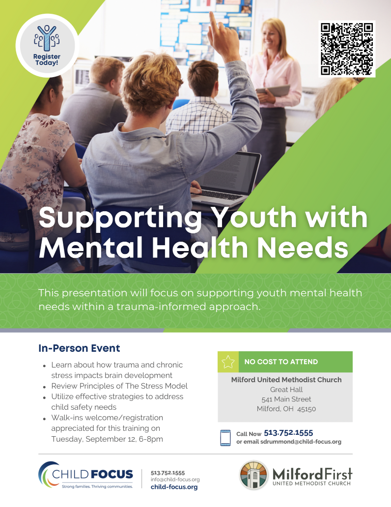 Join us as we continue the important conversation around critical issues with the next workshop in our mental wellness series hosted by Milford First and facilitated by leaders from Child Focus. This presentation provides a foundation for understanding the impact of stress on youth and will discuss practical ways to respond and support youth.